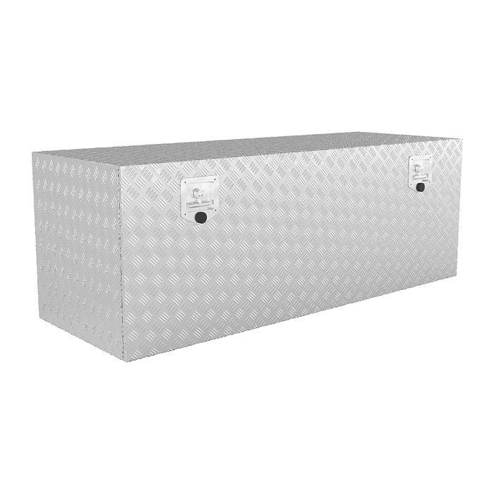 Ящики инструментальные ТРАНСБОКС серии ТВ предназначены для хранения и транспортировки инструмента, запчастей, расходных материалов и прочего. Изготовлены из рефленого алюмния толщиной 2,5 мм. Ящики оборудованы нержавеющими полированными замками с ключами. Дверцы ящиков оборудованы удерживающими цепями. В основном устанавливаются на полуприцепы, но не ко всем полуприцепам подойдет кронштейн для установки. Пластины крепления кронштейна имеют высоту 25 см. А, к примеру, у полуприцепов WIELTON высота двутавра рамы всего 19 см. Важно учитывать этот момент! Изредка подходят для большегрузных грузовиков, чаще - для среднетоннажных.