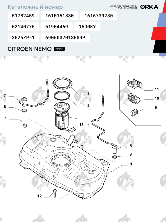 Бак Ситроен Немо полностью соответствует оригинальному заводскому - форма и габариты, расположение технологических отверстий и пазов креплений. Бензобак имеет выштамповку оригинала и имеет идентичную вместимость топлива!