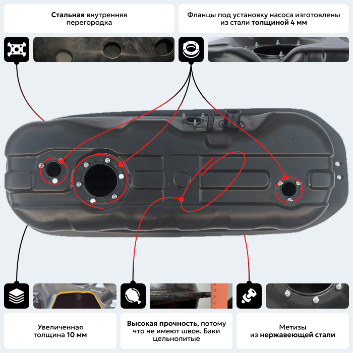 Все топливные баки имеют официальную сертификацию по стандартам ГОСТ Российской Федерации.